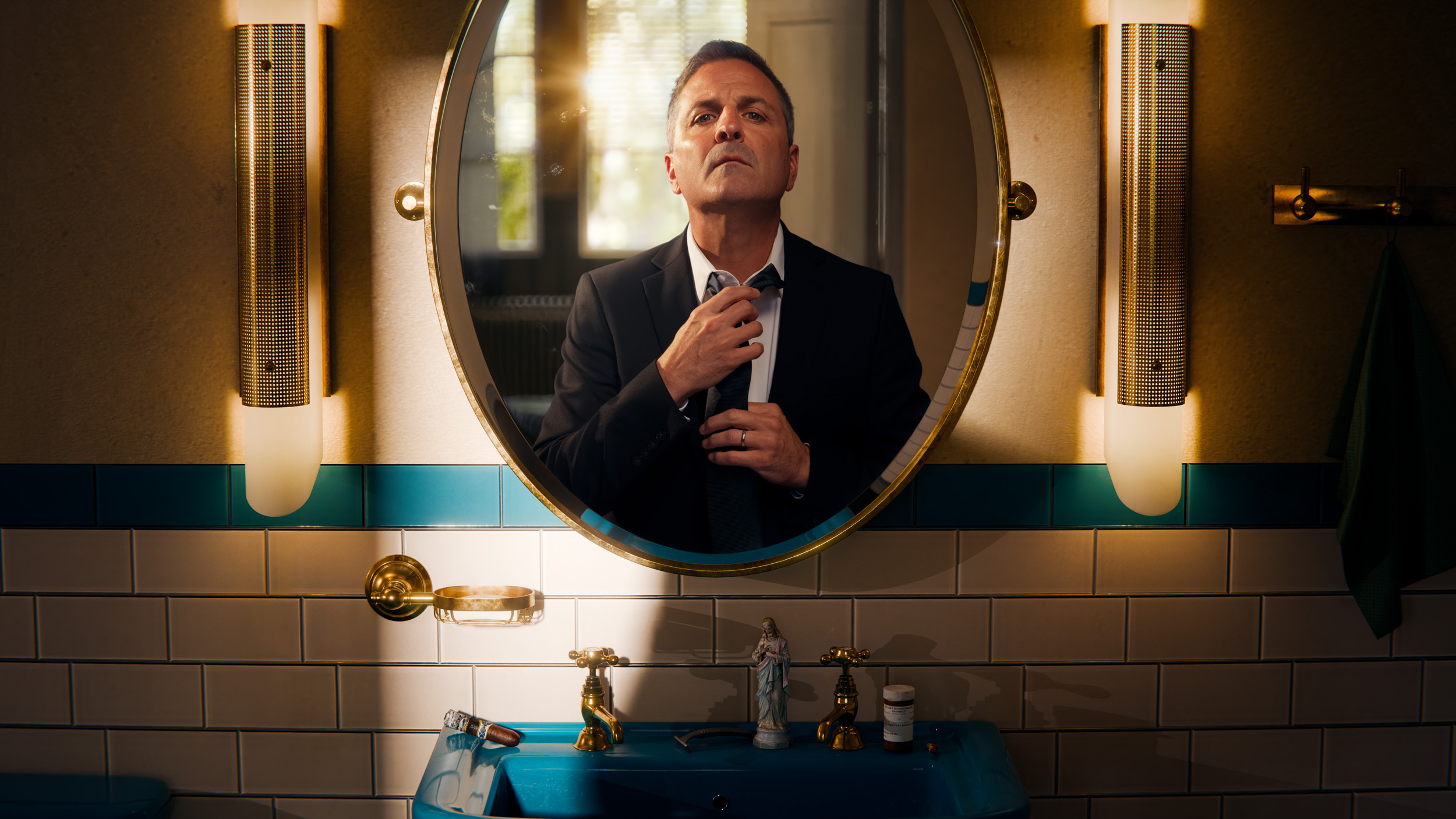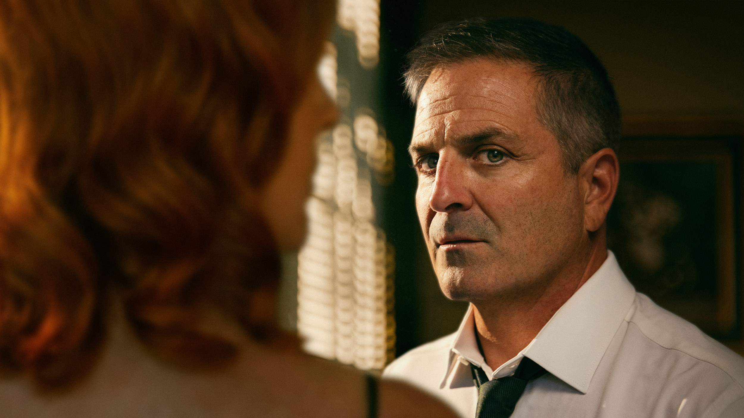 Each scene was constructed entirely in 3D: interiors designed from scratch, props selected to deepen the story. The bathroom mirror scene tells its own narrative: a religious statue, a burning cigar and prescription pills on the sink. Nothing is decorative. Everything serves the character.