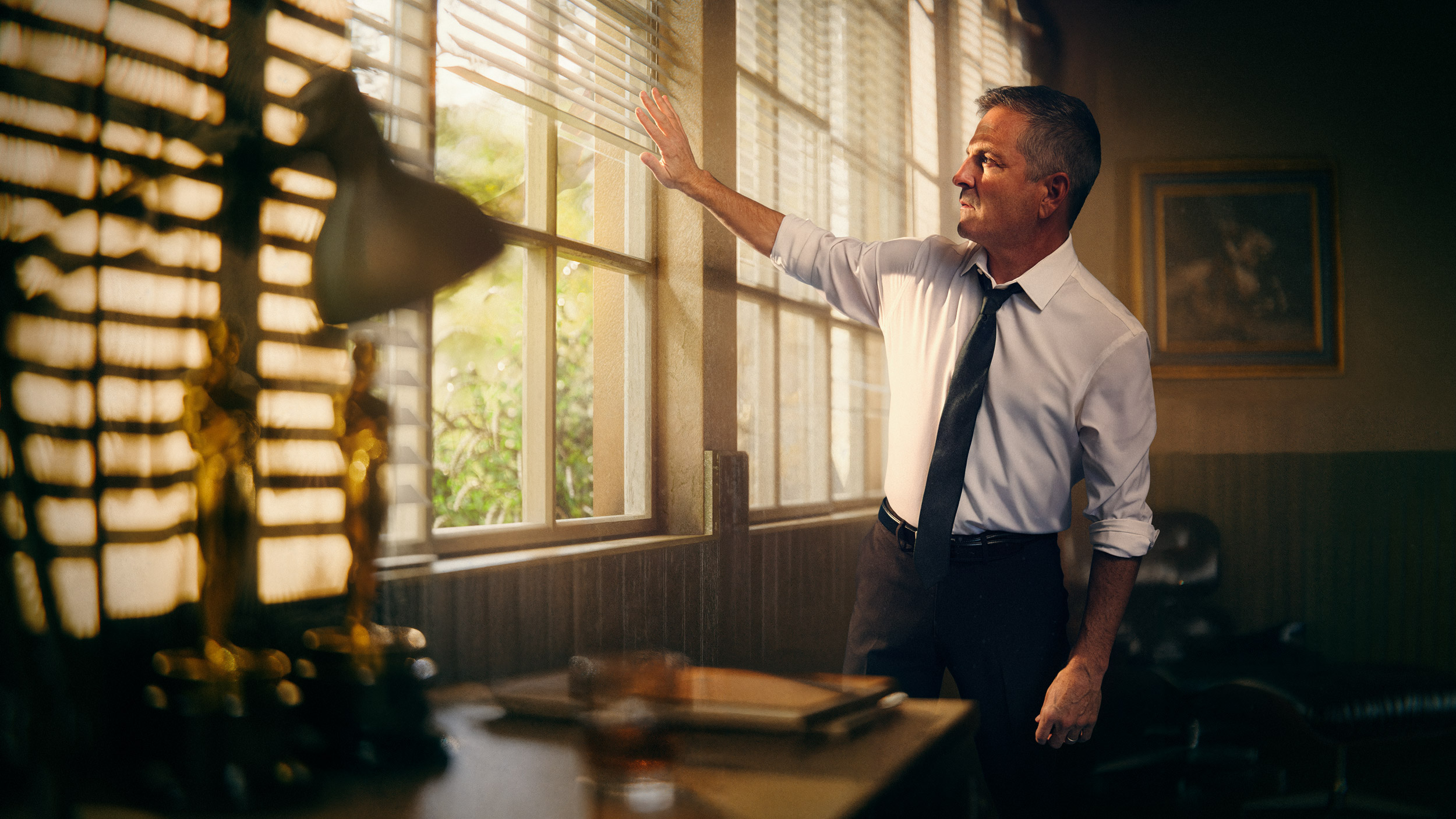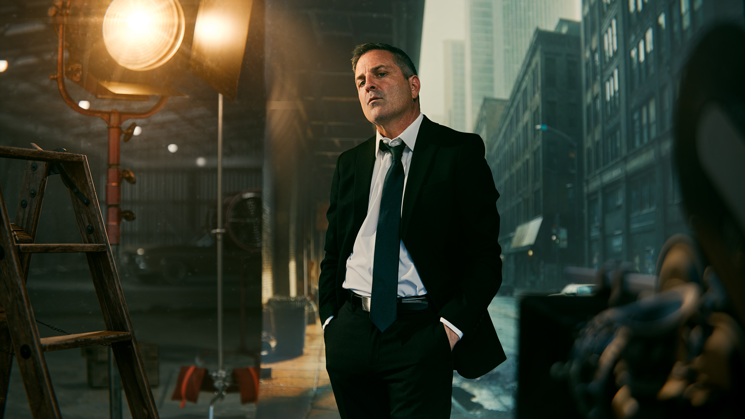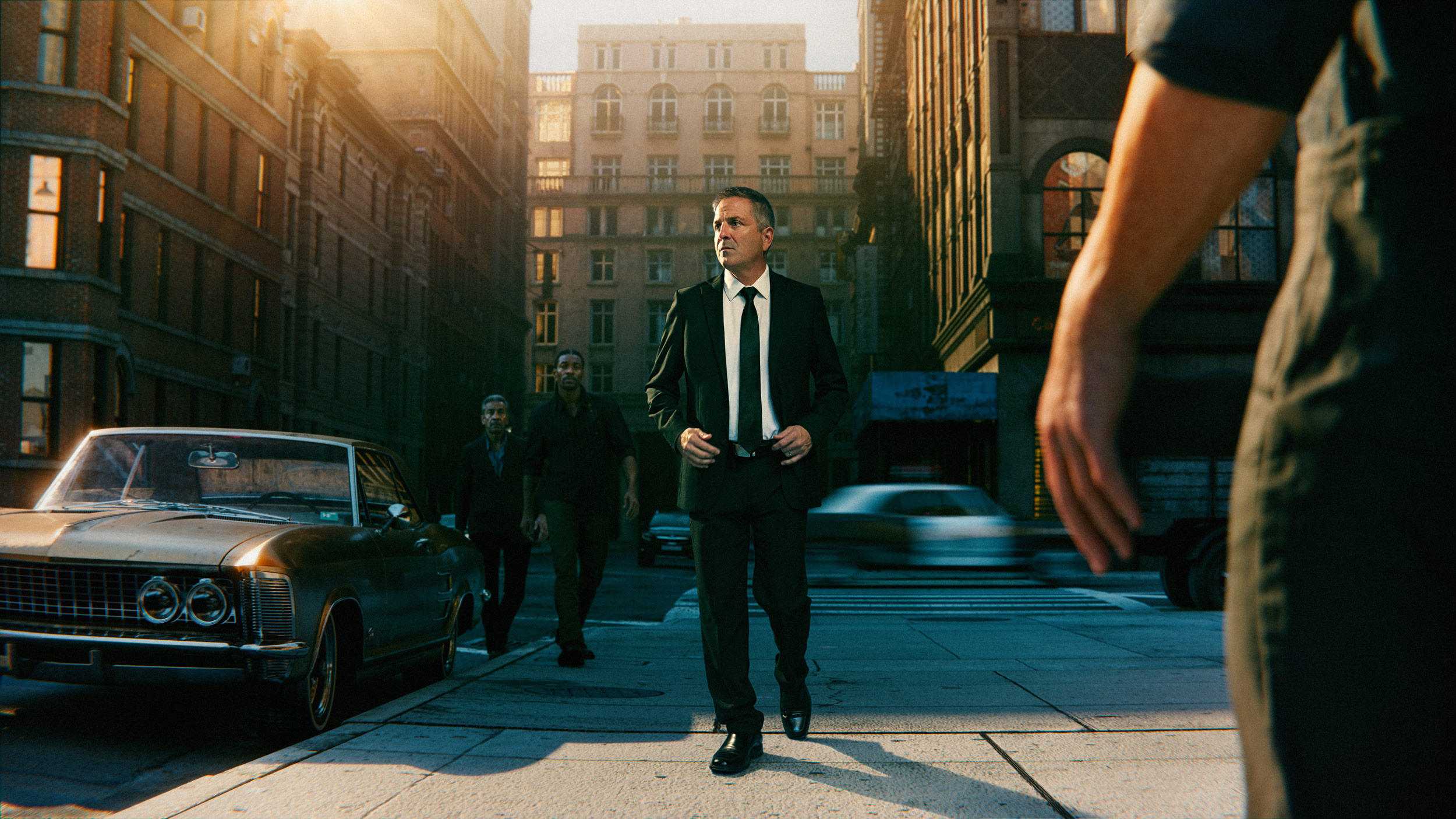 When Phil stepped in front of the camera in his black suit and tie, I saw it immediately: a modern Hollywood gangster. Dangerous, charming, the kind of man whose whole story you want to know. From that point, every environment I built was in direct response to what Phil was giving me. I asked myself the same questions I always ask: Why does he feel this way? Where is he? What is he looking at? Then I built the answers.